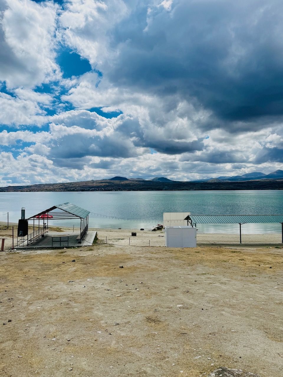 Im Städtchen angekommen bezogen wir ein modernes und schickes Gasthaus, das zur Nebensaison unglaublich günstig war. Gleich machten wir uns auf den Weg zum Sevansee. Wir mussten ein recht heruntergekommenes Viertel durchqueren und die Schnellstrasse mit einem Übergang passieren. Am Ufer des Sees angekommen sahen wir: nichts. Jedenfalls nichts, was besonders interessant gewesen wäre. Ja, der See ist gross, immerhin der grösste Gebirgssee der Welt, doch das Ufer war leer, die geschlossenen Strandbars verströmten keinerlei Charme und wir konnten nur schwer darüber hinwegsehen. Immerhin sahen wir fünf knuffige Welpen, die miteinander spielten und rangelten und uns die trostlose Umgebung für einen Moment vergessen liessen. Die Einrichtungen, Strandhütten und zerfledderten Sonnenschirme liessen erahnen, wie es im Sommer hier zu und her gehen musste. Der ganze Sevansee ist Zufluchtsort der in Jerewan lebenden Bevölkerung; auf 1900 Metern über Meer ist es auch im Sommer angenehm kühl und der See und die Strände laden zum Baden ein.