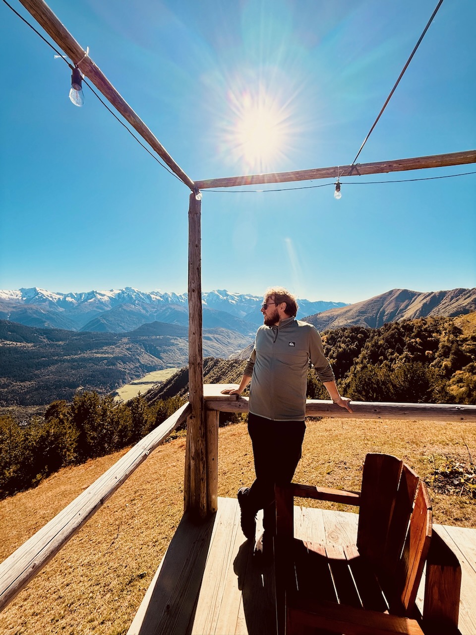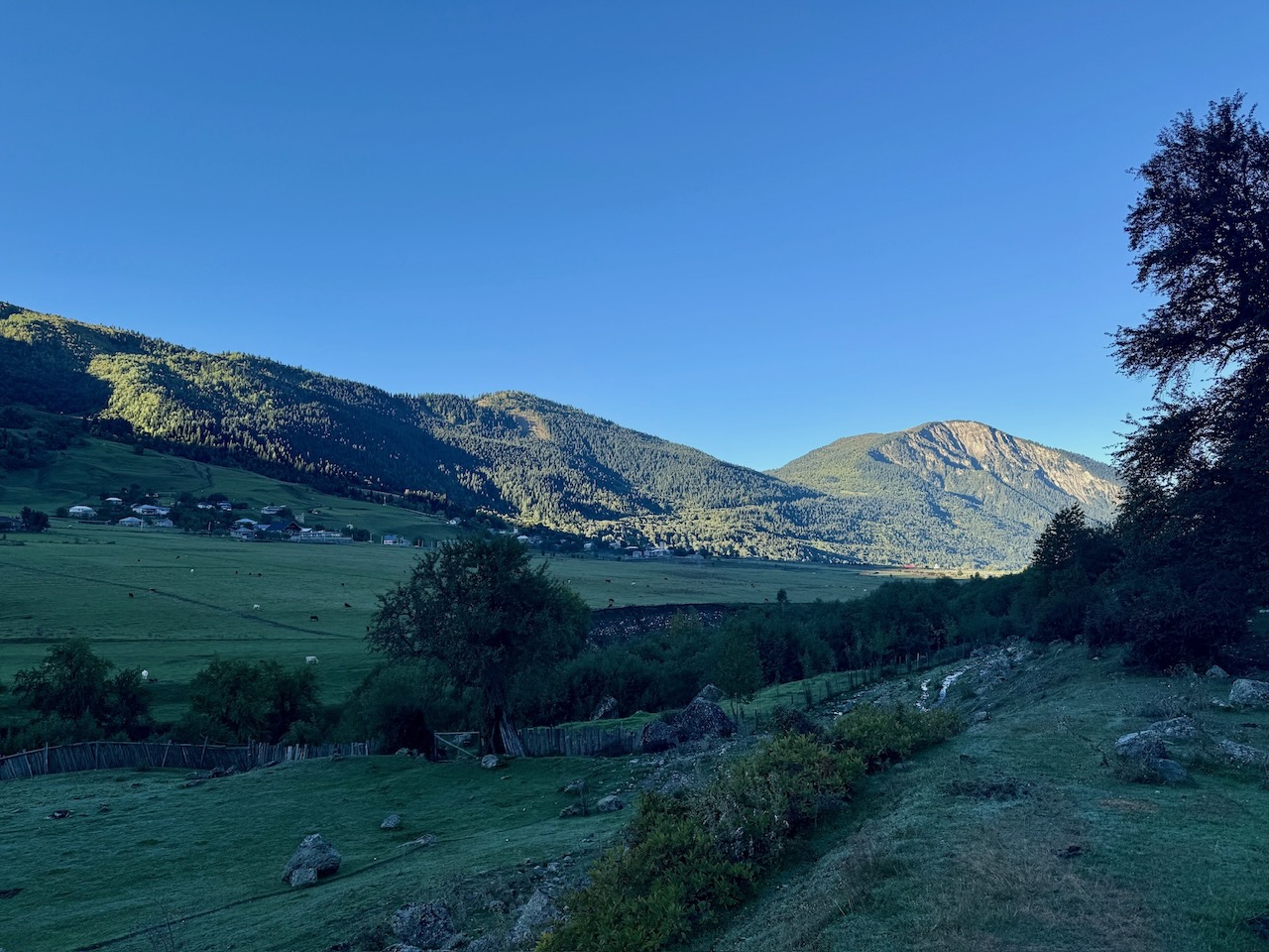 Am nächsten Tag schliefen wir ein wenig aus, unser Plan war es die Gegend zuerst ein wenig auszukundschaften, in der Touristeninformation fragen, welche Wanderungen sie uns empfehlen würden und dann eine kurze Halbtageswanderung zu machen, um uns an die Höhe zu gewöhnen und unsere eingerosteten Beine wieder zu ölen. Wir kauften ein bisschen Proviant im Supermarkt ein und holten uns einen Kaffee am Stand gleich bei der Busstation. Der Kaffee ist wirklich super und wir können den jedem empfehlen, auch wenn der Preis nicht gerade klein ist. Wir lasen im Internet, dass die Touristeninformation eigentlich von 9:00 bis 12:00 und von 13:00 bis 18:00 offen sei, die Zeiten aber unberechenbar seien. Wir kamen kurz nach 10:00 bei der Touristeninformation an, aber scheinbar war niemand daran interessiert, das Büro zu öffnen. Wir warteten noch einige Zeit, fragten einige Einheimische, aber auch sie konnten uns keine exakte Zeit nennen, wann es geöffnet sein sollte. Irgendwann waren wir das Warten leid und wir beschlossen eine kurze Wanderung zu machen, die wir online gesehen haben. Sie startet mitten im Dorf und geht hoch bis zum Mestia-Kreuz, das oben auf einem Vorsprung vor einem Berggipfel steht. Wir nahmen den Weg in Angriff und langsam, aber sicher wurde er immer steiler, durch den Wald und dann immer weiter hoch. Einige Stellen waren wirklich unangenehm und nicht gut befestigt und wir hatten viel viel länger bzw. waren langsamer als wir uns das eigentlich gedacht hatten. Endlich oben angekommen, breitet sich dort ein kleines Plateau aus, wo wir auf einer Holzverbauung unser Lunchpaket assen. Das Plateau ist auch Startbahn für Gleitschirmflieger, die man hier überall beobachten konnte. Beim Aufstieg haben wir auch immer wieder gehört, wie die Gleitschirmflieger per Funkt mit ihrem Ausbildner oder Lotsen Kontakt aufnahmen. Irgendwie wurde es in der Gegend immer hektischer, wir nahmen erst an, dass der Krankenwagen immer dort oben stationiert ist, aber nach und nach begriffen wir, dass jemand scheinbar auf dem Aufstieg, den wir gerade hinter uns hatten, verunfallt sein musste und man diese Person nun suchte und auch die Gleitschirmflieger in die Suche involviert waren. Einige Zeit später kam eine weitere Wanderin den Pfad auf das Plateau hinauf und informierte die inzwischen eingetroffene Polizei und die Rettungskräfte, dass sie die Person gesehen habe und sie die Rettungskräfte dorthin führen könne. Vom Plateau aus wäre es eigentlich noch möglich bis zu einem Bergsee zu wandern, der dann nochmals etwa 1000 Höhenmeter und einige Stunden entfernt war, wir beliessen es dabei noch ein wenig weiter bis zur Alphütte zu gehen. Nach einer kleinen Rast dort stiegen wir ab wieder zurück nach Mestia, über den Osthang, der weitaus weniger steil war, um sicher vor Einbruch der Dunkelheit zurück in Mestia zu sein.