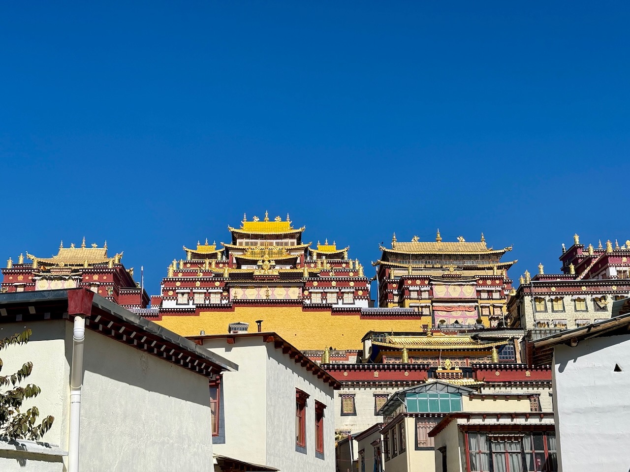 Der letzte Tag in Shangri-La startete speziell. Wir hörten in unserem Zimmer, dass es überall knallte. Schnell schlossen wir Schüsse aus – es war sehr unwahrscheinlich, aber man kann ja nie wissen – und gingen nach draussen, um zu sehen, was los war. Überall im Quartier wurden kleine Feuerwerksraketen gezündet, kleine Knaller, die einen unglaublichen Lärm veranstalteten. Wir wurden dort gerade Zeuge einer in China und im tibetischen Buddhismus jahrtausendealten Tradition. Zur Hochzeit, aber auch zum Beispiel beim Fertigstellen eines Wohnhauses werden diese Ritual-Böller gezündet, welche negative Energien und böse Geister vertreiben sollen. Ansonsten stand der Tag komplett im Zeichen des Briefeschreibens. Wir bezogen Stellung in einem Café, welches bisher noch nie offen hatte, und schrieben Karten, was unser Kugelschreiber aushielt. Das führte auch dazu, dass auf der einen oder anderen Karte vielleicht eine Unterschrift oder eine Hausnummer fehlte. Soweit wir wissen, sind alle angekommen; wir entschuldigen uns aber bei allen, bei denen uns das passiert ist. Wir durchstreiften danach ein wenig die Neustadt, welche im Vergleich zu den traditionellen Häusern trister wirkt, aber die man doch irgendwie gesehen haben sollte, denn hier spielt sich grösstenteils das echte Leben der Einwohner ab. Wir sahen Plätze, gingen in Einkaufsläden und liessen uns einfach treiben, bis wir irgendwann im Kreis gingen und wieder in der Nähe der Altstadt waren. Dort kehrten wir in einen Imbiss ein, in dem schon andere Personen sassen, und assen zu Mittag. Als wir die Ausgaben des Tages notierten, stellten wir fest, dass wir tatsächlich vergessen hatten, unseren Kaffee am Morgen zu bezahlen. Es war uns unheimlich peinlich. Schleunigst suchten wir den Weg dorthin zurück, was sich plötzlich als schwieriger erwies als gedacht, und hofften, dass es noch offen hatte, damit wir unsere Schulden begleichen konnten. Als wir eintraten, wusste der Barista sofort, warum wir zurückgekehrt waren, und tippte schon vergnügt unseren Fehlbetrag in die Kasse. Wir zückten unsere Smartphones, um mit den gängigen Apps zu bezahlen. Irgendwie vergingen die Stunden wie im Flug, und schon bald ging auch dieser Tag zu Ende. Wir suchten noch ein Restaurant auf, das traditionelle tibetische Gerichte, aber auch eigene Kreationen kocht, und liessen es uns dort gut gehen. Zum Dessert teilten wir uns noch einen Yak-Joghurt mit tibetischem Honig. Auch das war derart gut und speziell – es war, als wären unsere Geschmackssinne geschärft unter dem Dach der Welt.