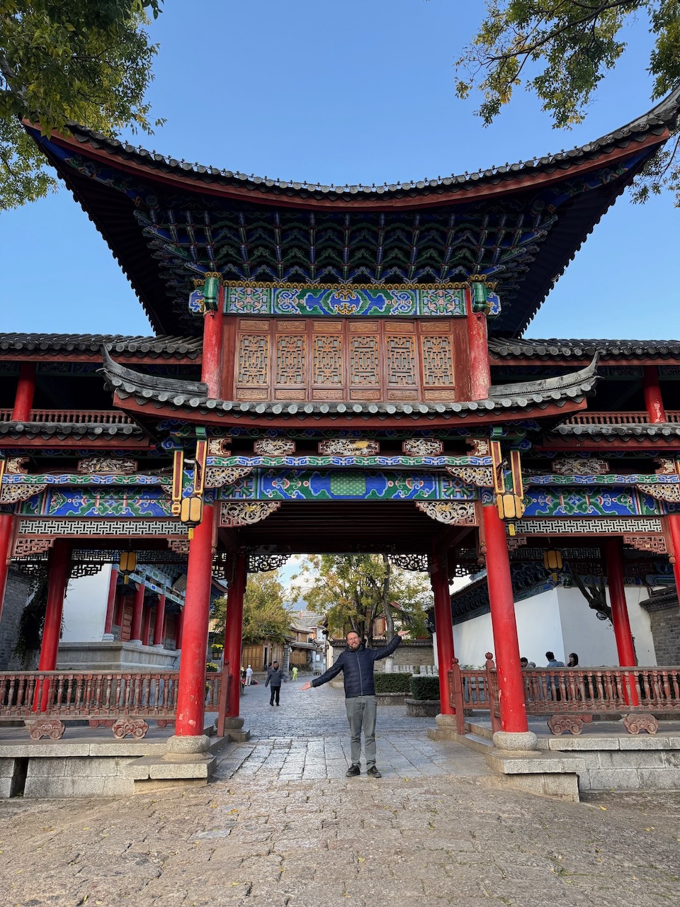 Der Abschied von Shangri-La fiel uns wirklich schwer, aber es ging wieder etwa eine Stunde die gleiche Strecke zurück bis nach Lijiang. Viele Touristen kommen hierher, da die Altstadt wunderschön und UNESCO-Weltkulturerbe ist. Wir waren aber vor allem da, weil wir die Tigersprungschlucht besichtigen und bewandern wollten. Wir kamen mit dem Zug an und fuhren in Richtung unseres Hostels, das wir zwei Tage zuvor gebucht hatten. Als wir in der Strasse ankamen, wo es eigentlich sein sollte, fanden wir es jedoch nicht. Apple Maps gab uns nur verwirrende Angaben, und die beste Alternative für Reisende, die App AMap (ein Projekt von Alibaba), fand das Hotel auch nicht. Google Maps ist in China im Übrigen meist so hilfreich wie eine Schweizer Karte 1:50'000, die Liedertswil im Jahr 1961 abbildet. Wir suchten und suchten, betraten verschiedenste Büros und fragten nach dem Eingang des Hostels, bis wir schliesslich merkten, dass wir direkt davor vom Taxifahrer abgesetzt worden waren, es aber schlicht übersehen hatten.